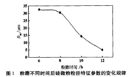 从表3可以看出,粉磨8 h后硅微粉的中位径D 。